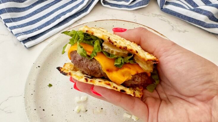 The baked cottage cheese wrap is a brilliant swap for a traditional bun. It’s surprisingly sturdy, naturally gluten-free, and adds a chewy, savoury layer that pairs perfectly with the juicy beef patty. This technique allows you to enjoy a fully-loaded burger experience, minus the excess calories and carbs.