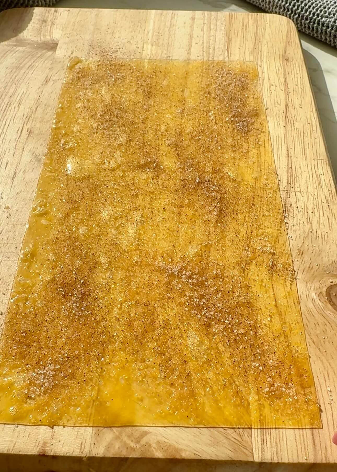 Mix erythritol and cinnamon together and sprinkle over the rice paper.
