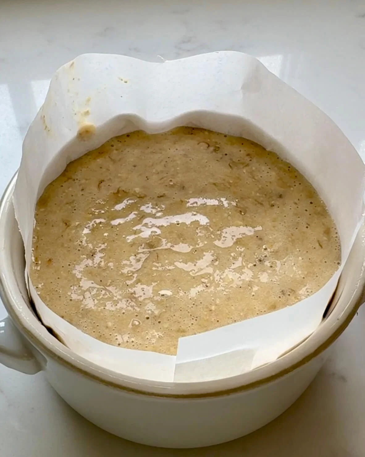 Transfer to a Ramekin Pour the batter into a small oven-safe ramekin or mini baking dish (around 250ml capacity). Coach tip: For a portable version, use a silicone muffin cup to turn this into a gluten free banana bread muffin.