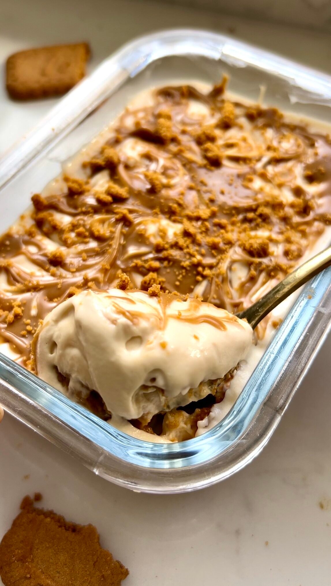 Everyone seems to be going crazy over Japanese cheesecake lately, and while I do enjoy it, this Biscoff tiramisu honestly wins for me every time. As a nutrition coach, I’m always looking for ways to make desserts feel indulgent while still working for you, and this one does exactly that. It’s creamy, rich, and comforting, but made with higher-protein ingredients and no baking required.