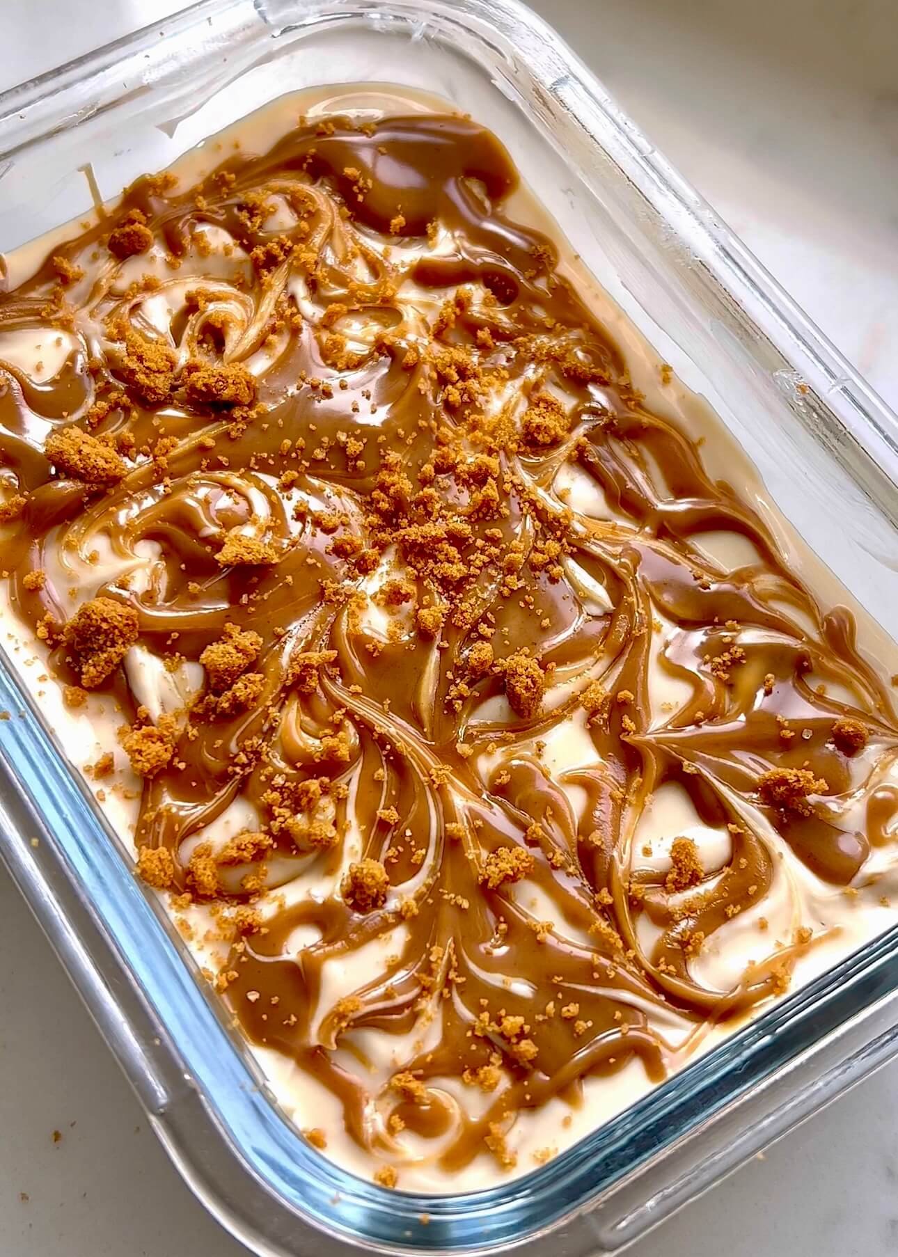 Top with extra melted Biscoff spread and a sprinkle of crushed biscuit.