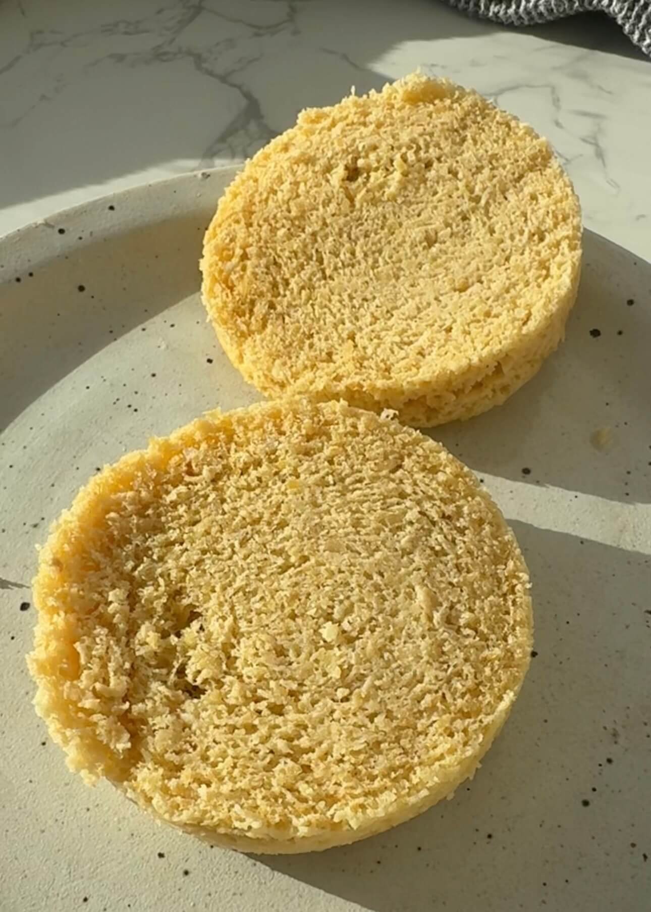 Pour the batter into a small microwave-safe bowl, ramekin, or mug. Smooth the top. Coach tip: Use a wider ramekin if you want a flatter, sandwich-style shape.