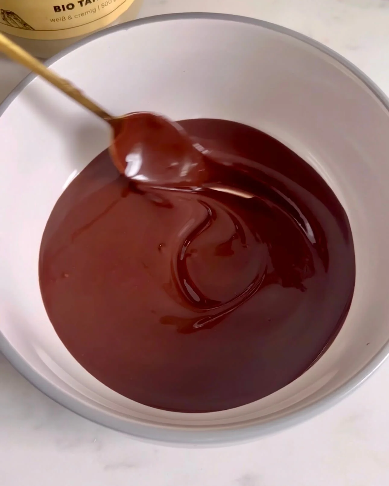 Add tahini to the melted chocolate and mix until fully combined into a creamy, glossy blend.