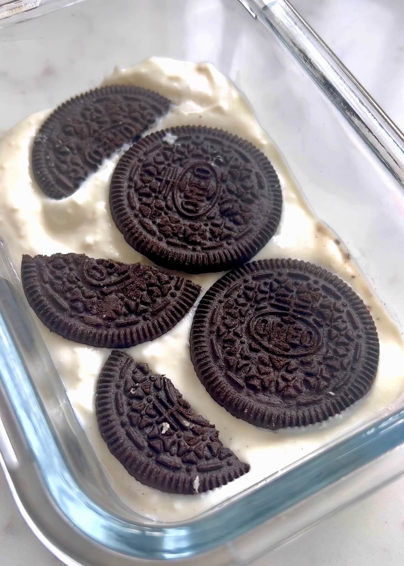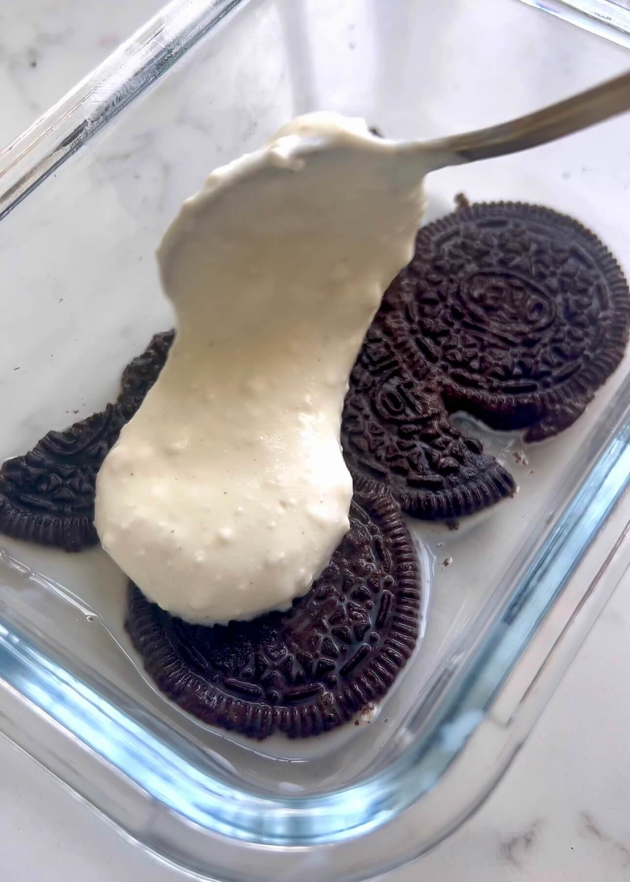 In a bowl, mix the Skyr yogurt, cream cheese, and reserved Oreo cream until smooth and well combined.