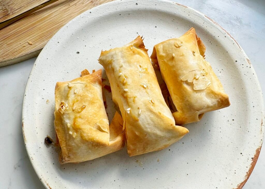 These banana and peanut butter filo pastries are a delicious mix of sweet and savory. The filo turns super flaky with a brush of melted butter or oil, and a sprinkle of sesame seeds adds extra texture. For an extra indulgent touch, drizzle with melted chocolate. Perfect for a quick snack or dessert!