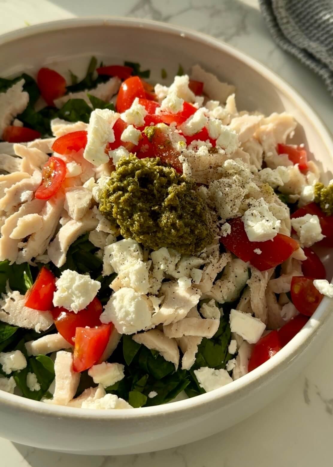 Sub: Basil paste, sun-dried tomato pesto, or homemade pesto. - 100 g shredded chicken