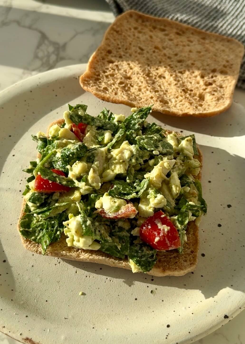 If you’re new here, you’ll notice a recurring ingredient in my recipes: cottage cheese. I use it a lot because it’s high in protein, naturally creamy, and works beautifully in savoury dishes. From a nutrition coaching perspective, it’s one of the easiest ways to upgrade a sandwich filling without relying on heavy sauces. And if you’re not a cottage cheese fan, I genuinely encourage you to try this – once it’s mixed with pesto and chicken, you won’t even notice it.
