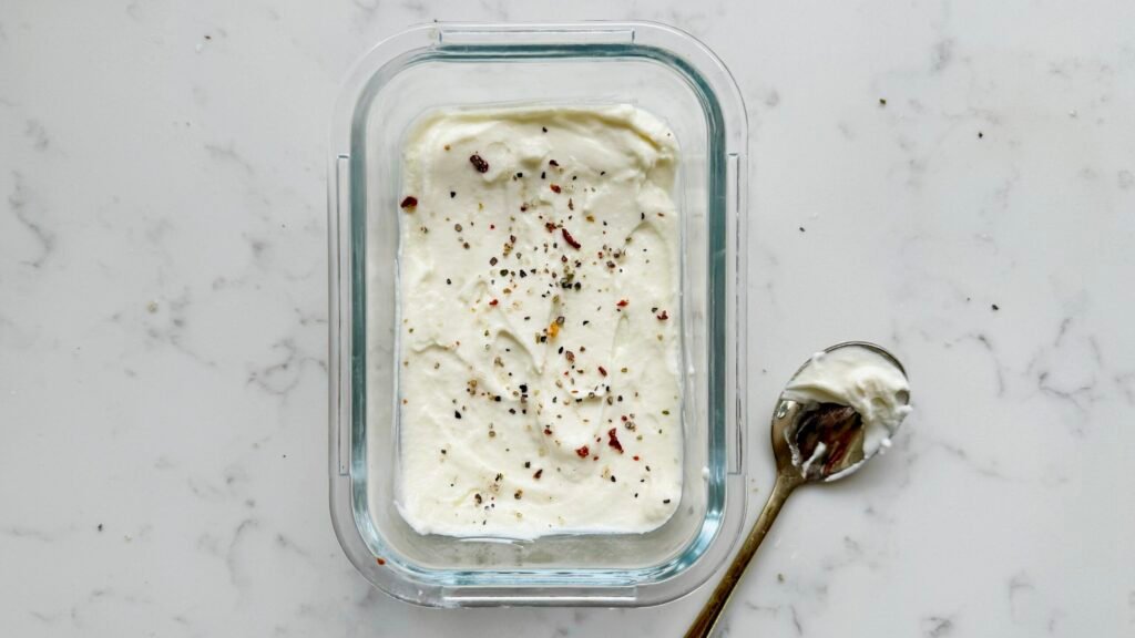 I added some herbs and a bit of salt to mine as I had in mind a recipe for later on but you can also use this for cheesecakes, cake frosting, pretty much anything you would use cream cheese for.