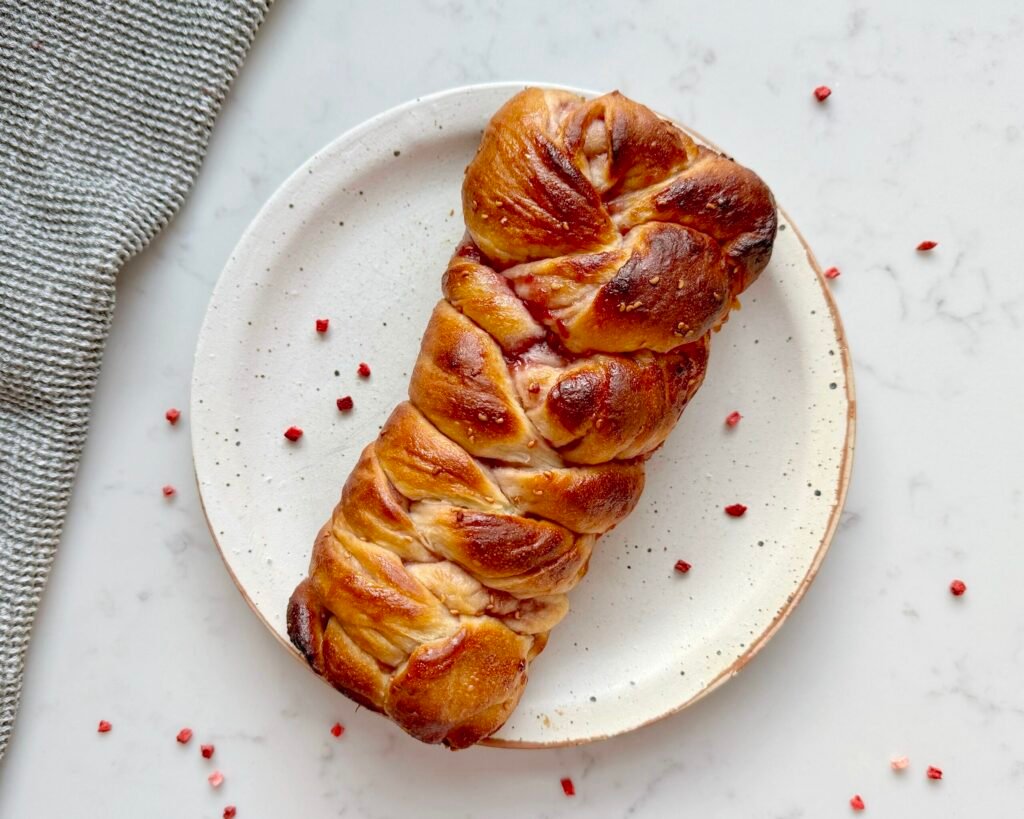 I have become a big lover of babka bread, I first tried it a while ago when I made some babka rolls and since then I wanted to try a loaf version. I used raspberry spread for the filling and my usual yeast based bread recipe.