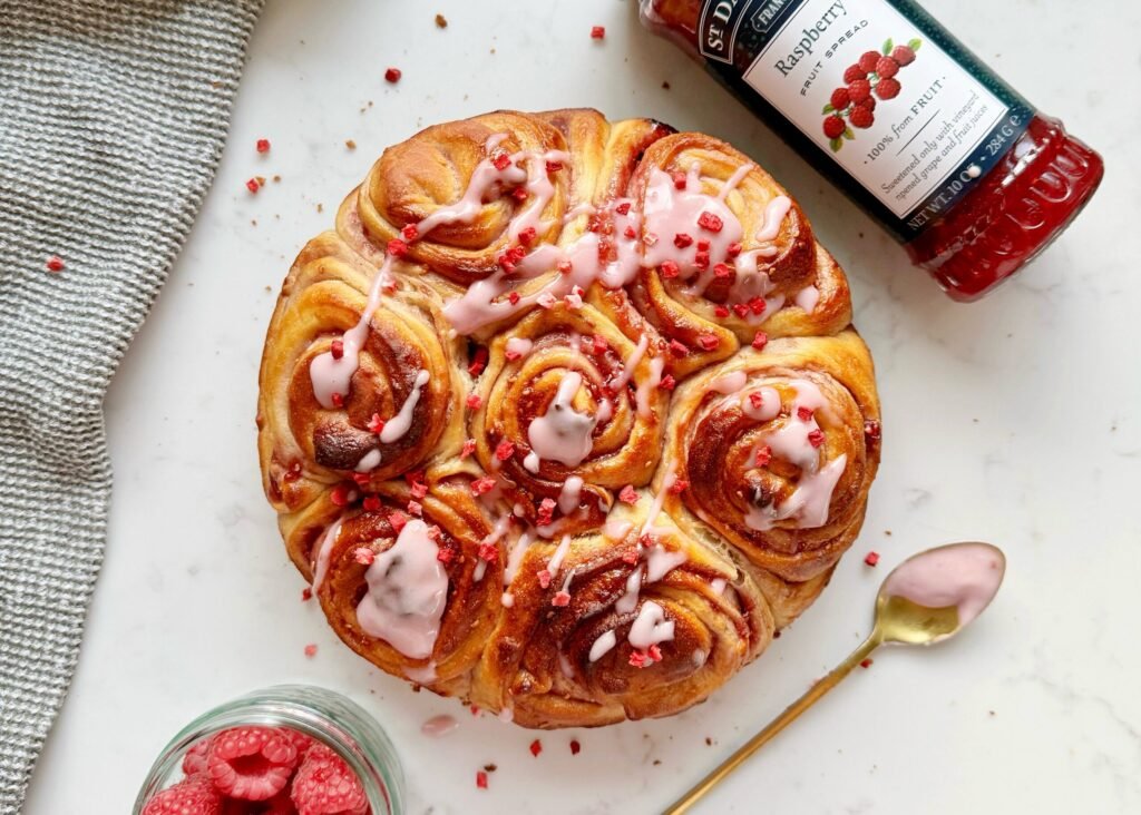 I am absolutely over the moon to share this recipe with you all! I have teamed up with St Dalfour UK to bring you the most delicious raspberry preserve bread rolls, super fluffy and full of flavour.