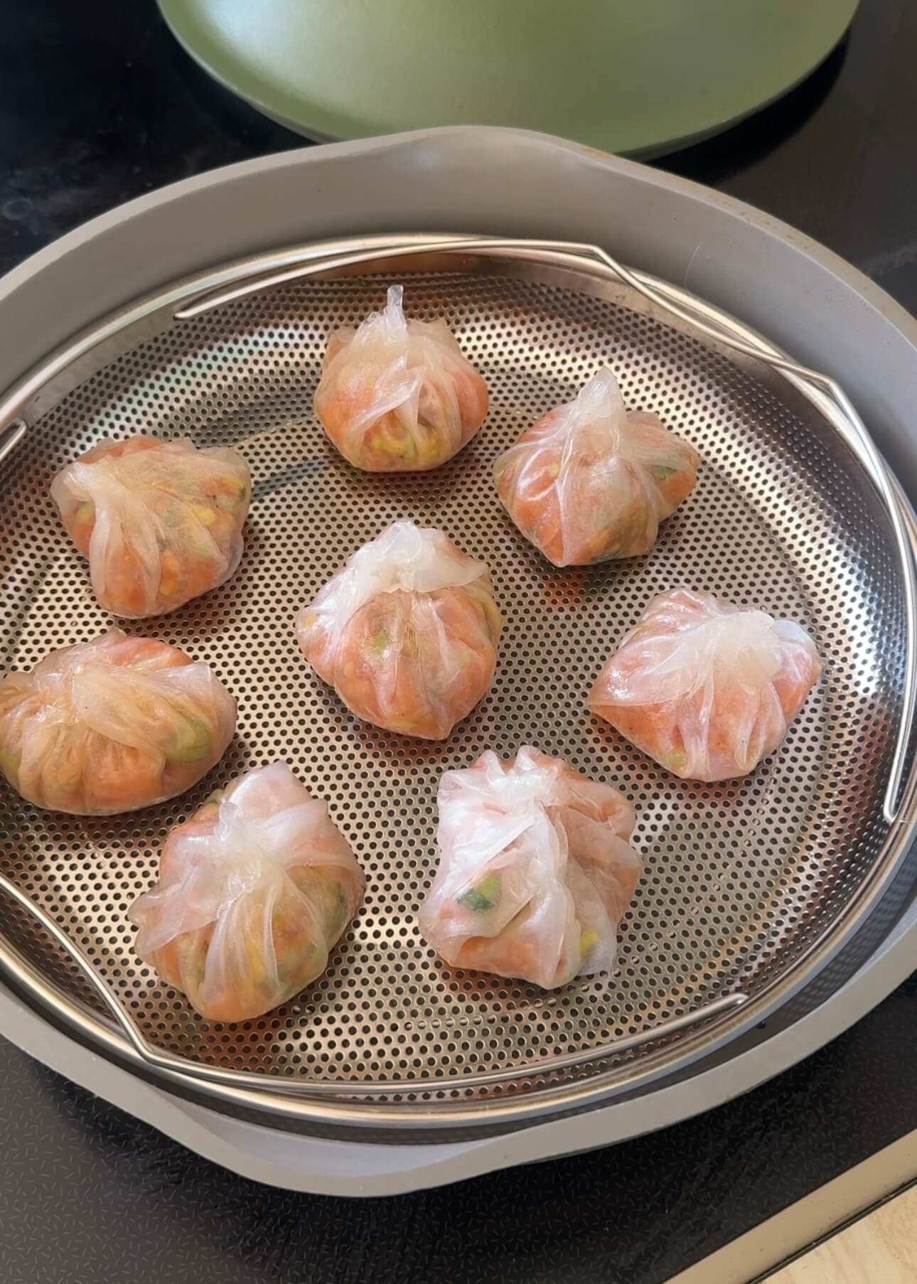 Lightly oil your steamer basket or line with parchment paper. Arrange dumplings and steam for 8–10 minutes.