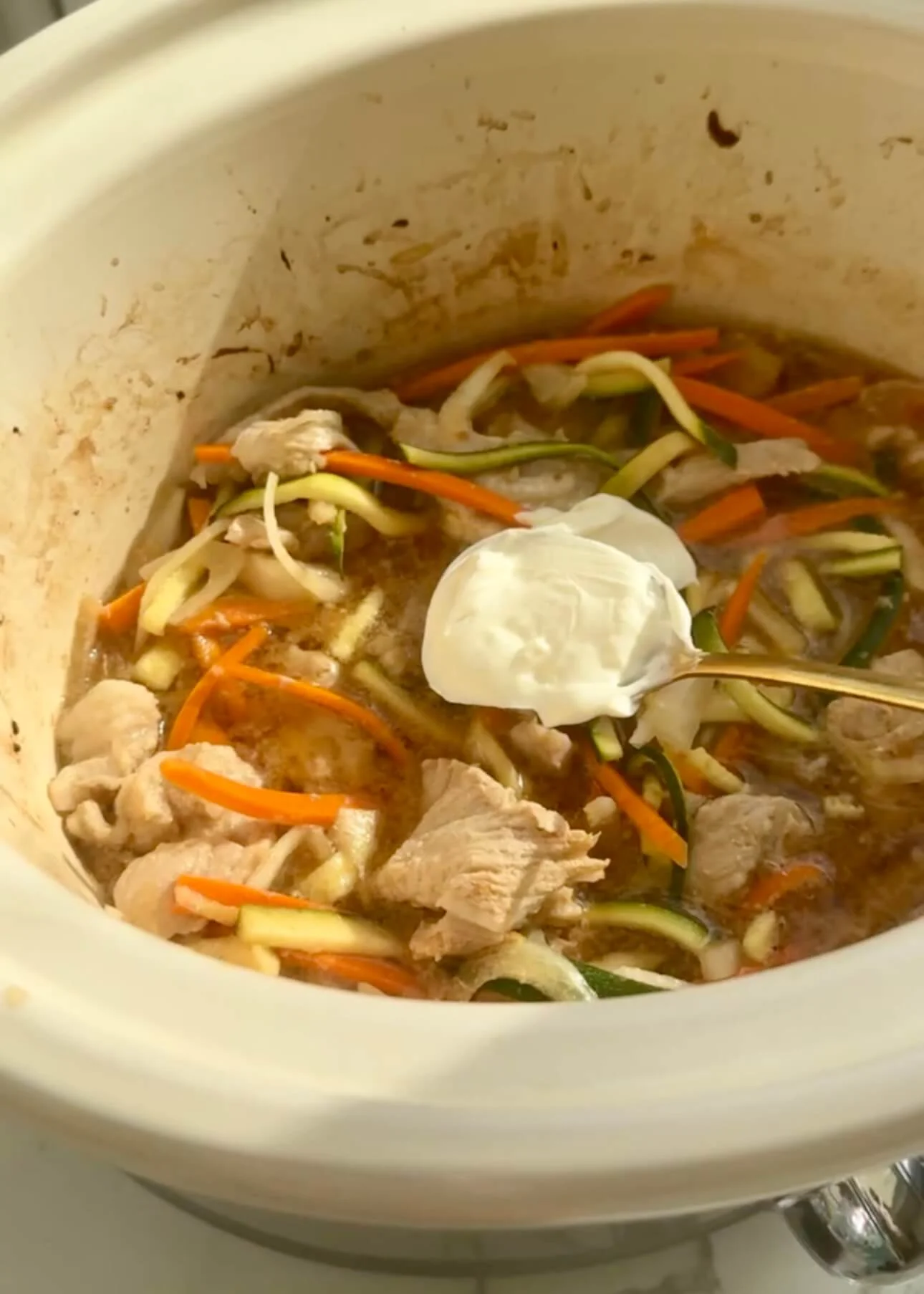 This is one of my go-to high protein slow cooker recipes when I want something cozy but light, creamy yet balanced, and most importantly, effortless.