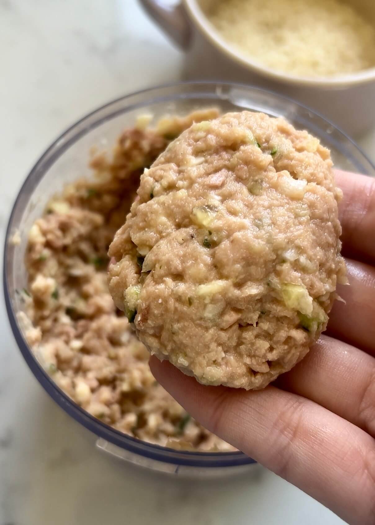 Divide the mixture into 6 portions and shape into small patties or logs. Roll each one in panko breadcrumbs until evenly coated.